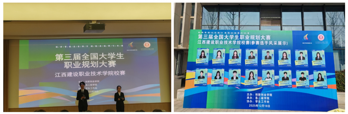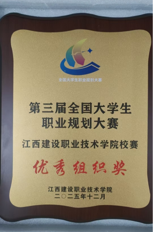 2025年12月18日,第三届全国大学生职业规划大赛江西建设职业技术学院校赛圆满落幕。我院学子在赛事中奋勇拼搏,其中,智能D2501班孙晨同学荣获成长赛道铜奖,电商D2401班曹柳燕同学荣获成长赛道优秀奖。此外,学院凭借出色的组织筹备工作与优异的赛事成果,荣获“优秀组织奖”,彰显了我院在职业生涯教育领域的扎实成效。